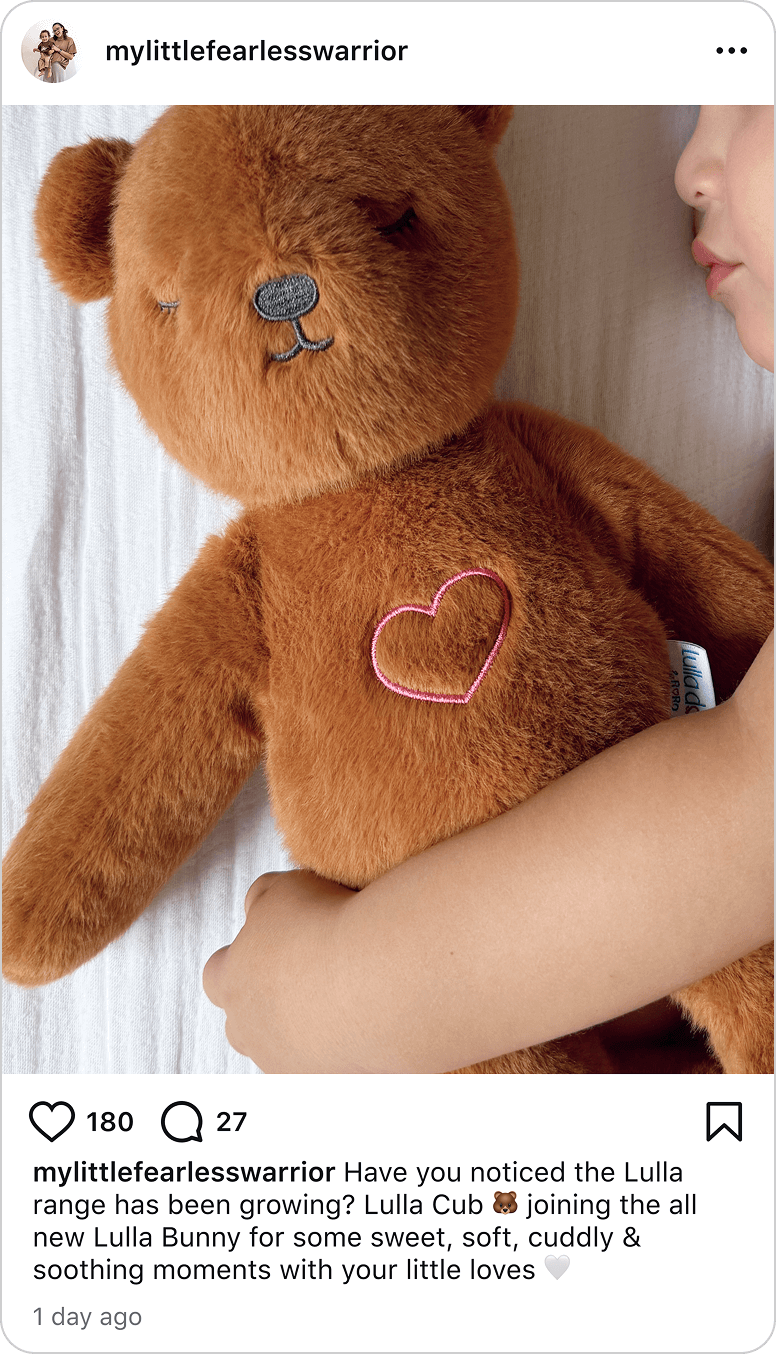 Designed by a psychologist and mother of three, Lulla has been helping Australian families sleep better for over 10 years. Now, the Lulla family is growing with the all-new Bunny and Cub.
