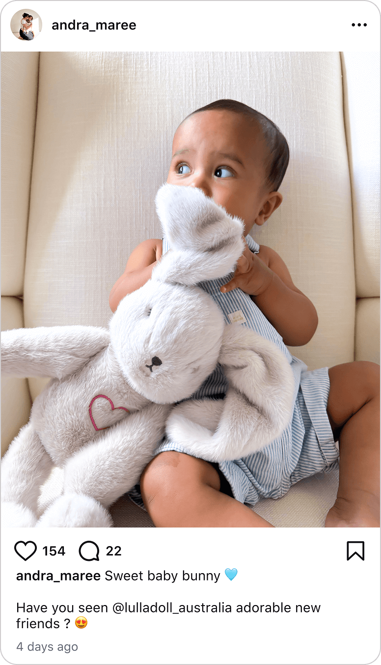 Designed by a psychologist and mother of three, Lulla has been helping Australian families sleep better for over 10 years. Now, the Lulla family is growing with the all-new Bunny and Cub.