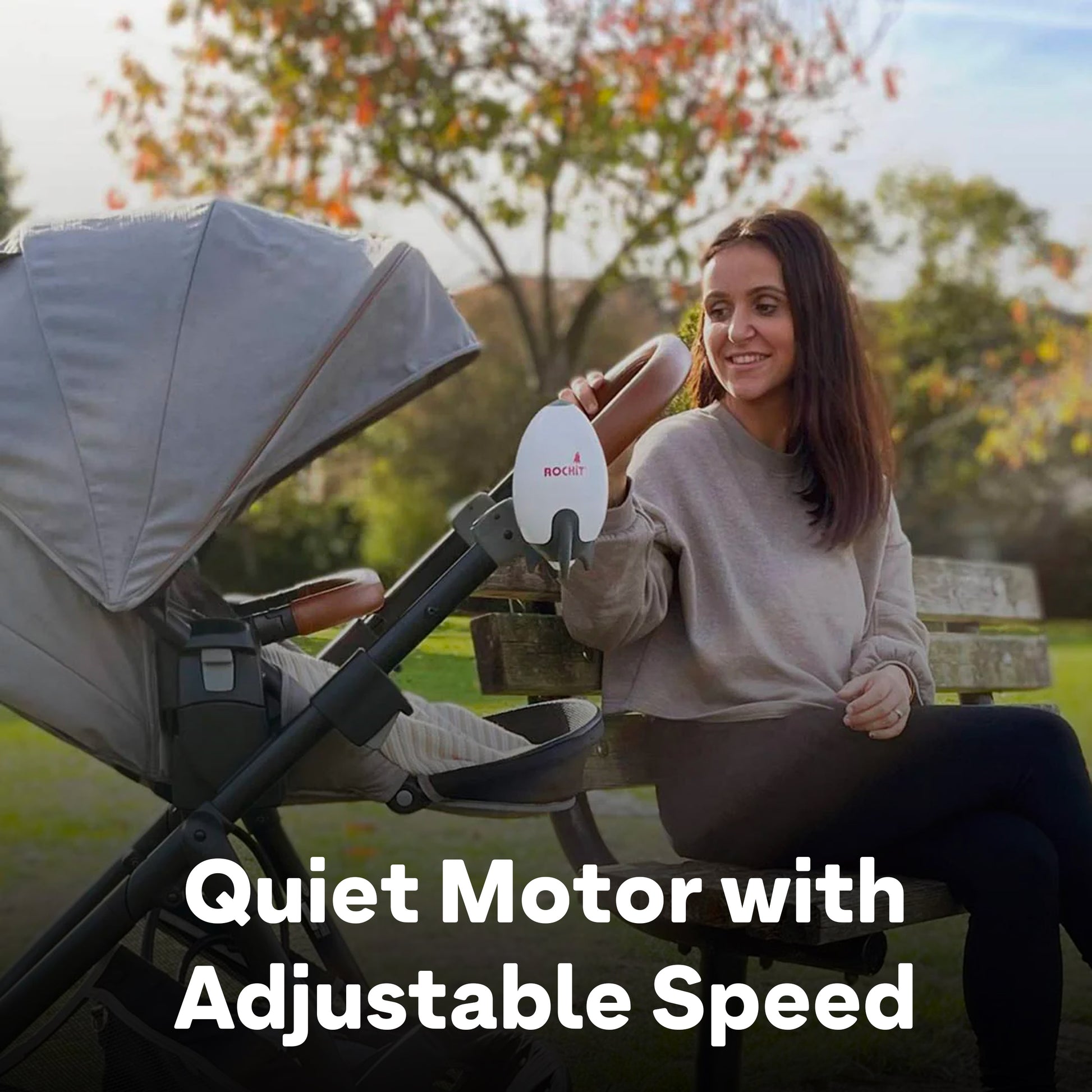 Slowly change the speed until you notice the most rocking. It may not be the fastest speed – often you can get a nice rock at lower speeds if you hit the sweet spot (resonance frequency) of your particular stroller / pram.